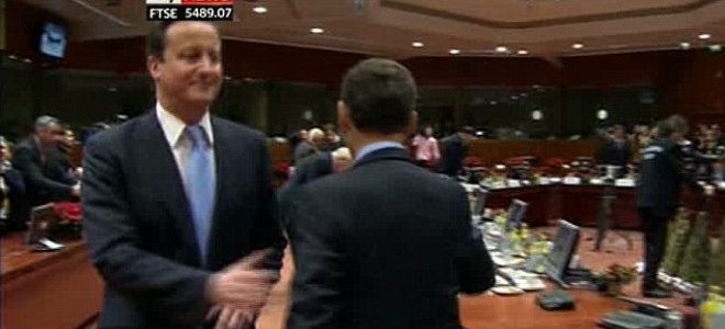 Ο Ντέιβιντ Κάμερον βρέθηκε στον δρόμο του Νικολά Σαρκοζί, στην αίθουσα που πραγματοποιήθηκε η συνεδρίαση της Συνόδου Κορυφής.